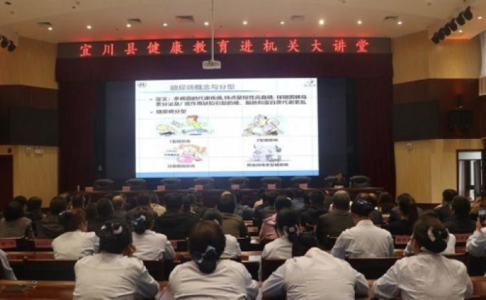 捐赠仪式后,中心邀请省人民医院主任医师乔媛,为宜川县机关干部职工进行了以“关注慢性病 远离健康杀手”健康教育知识讲座。通过生动的事例,引导机关干部职工树立健康理念,建立健康行为,做一个健康的宜川人。