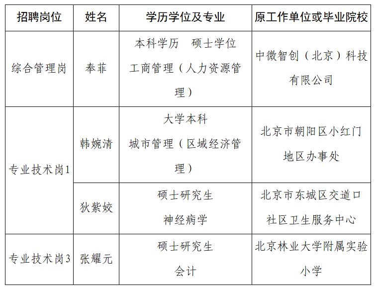 社会公开招聘拟聘用人员公示