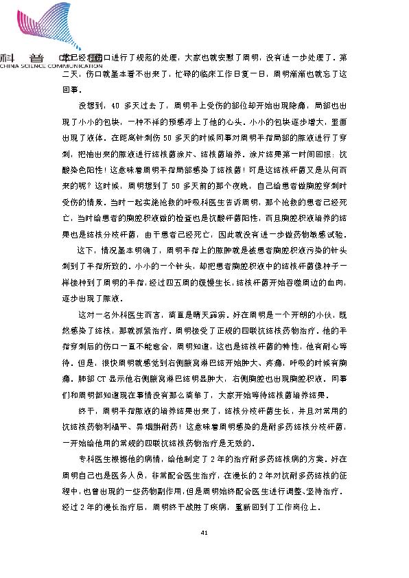 身边的结核病故事——小小针刺伤让外科医生失去了宝贵的两年